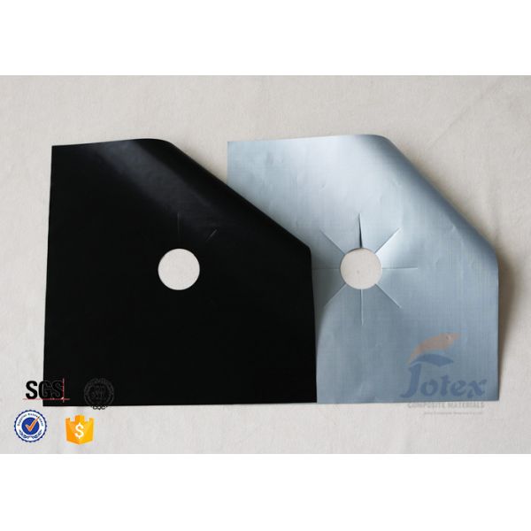 The materials of this protector is fiberglass fabric, it can be used below 550℃. But the PTFE coating can resist a temperature between -70℃ to 260℃, max temperature can be 380℃. Because during common cooking, the temperature is usually below 200℃. It is totally safe to use this teflon coated fiberglass fabric to produce gas range protectors. Common thickness of black protectors is 0.08mm, silver one is 0.12mm. Size of this stovetop is usually 10.6x10.6"(27x27cm).